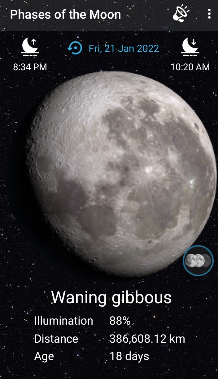 in the app ‘Phases of the Moon’ for 21 January 2022